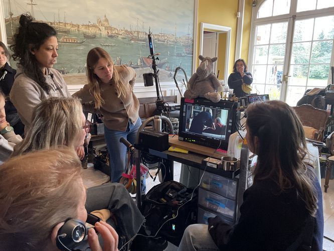 La Femme de a été tourné à Segré et dans le Haut-Anjou à l’hiver 2025 notamment dans la maison Le Verger à Chambellay, à Angers au lycée David-d'Angers, dans l’église et près de l’étang Saint-Nicolas (49). Toute la commune de Chambellay s'est mobilisée, mettant notamment à disposition la salle communale Jean-Claude-Brialy qui a servi de cantine et de bureaux. Un ancien centre technique a permis également de pouvoir entreposer les décors et les matériels utiles au tournage. 14 techniciens, 2 stagiaires, 6 comédiens et 157 figurants locaux ont été recrutés sur le projet.